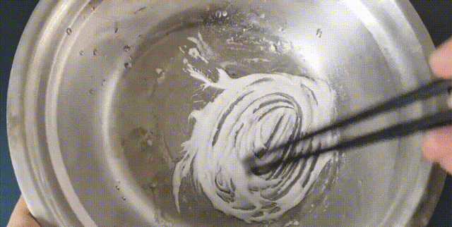 用筷子把这些材料搅匀,把溶液调到稍微浓稠一点的状态。这样涂在油烟机上不容易往下流。