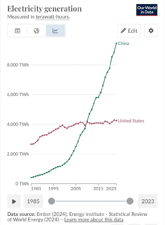 2023年数据知道,好意思国的发电量为4.4万亿千瓦时米兰体育官方网站,印度为1.9万亿千瓦时,而中国则达到了惊东谈主的9.4万亿千瓦时(险些是印度和好意思国的5倍和2倍多)。
