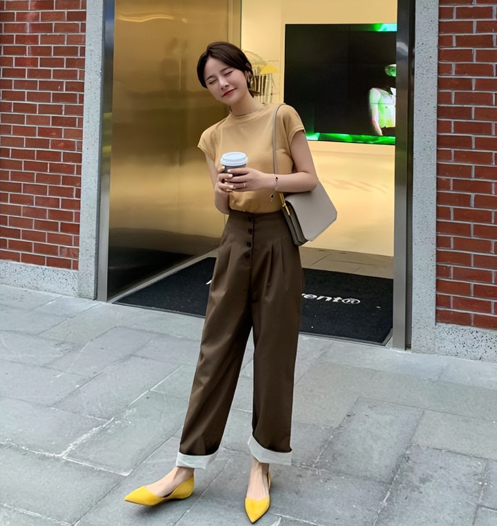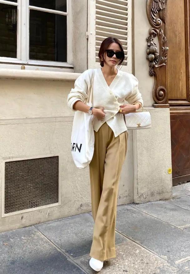 小衫配阔腿裤的穿法就更缜密一些,文艺风的穿搭,阔腿裤聘任棉料麻料皆可以,上半身选的小衫面料与裤装相呼应,这么举座性成果更好。小衫聘任微修身版型,况兼精明露肤度,整套穿搭洋气又有个性。
