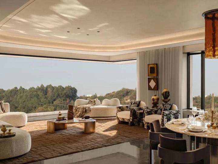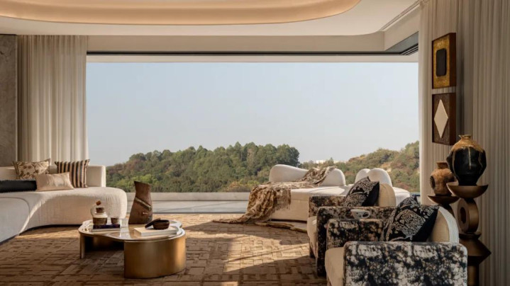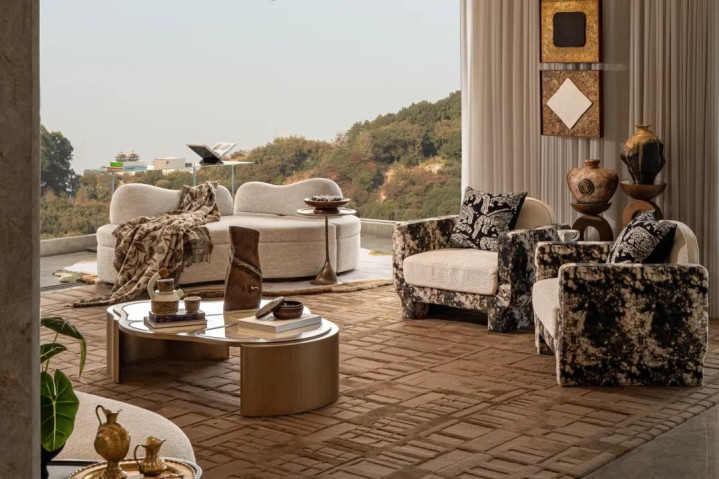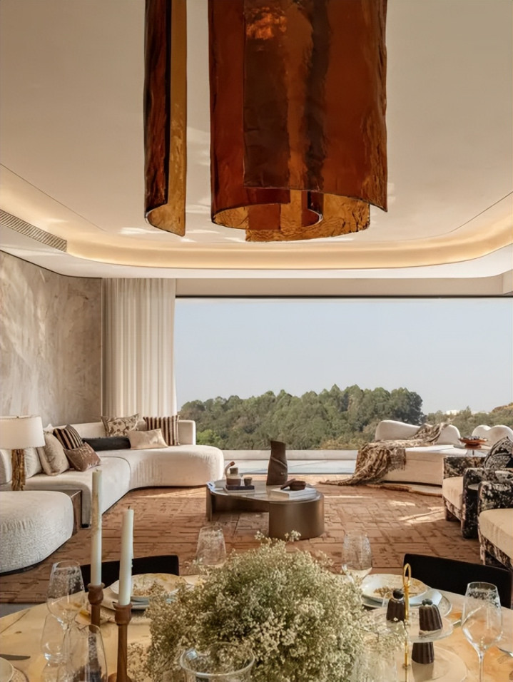 艺术与家具浑然相融,沉静的中性色温柔包裹整个空间,那份稳重安宁的质感,皆悄然映进自然的广袤景致里,一场自然与家居的“对望”,于时光长河中缓缓铺展。