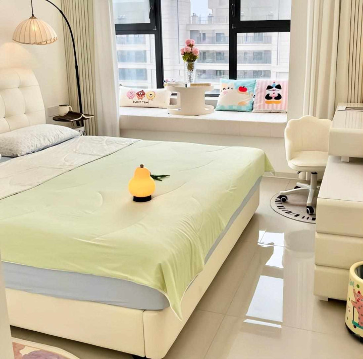 我自己睡的是一米五宽的床,旁边摆着一个小书架和一张折叠桌,早上起床就能喝咖啡看手机,床底下装了带轮子的储物箱,打扫时直接拉出来就行,一点不用搬动床,邻居看到都说这个办法很聪明,还问我是不是请人设计的,其实根本没那么复杂,就是多量了几次尺寸,别总想着大床才显得有面子。