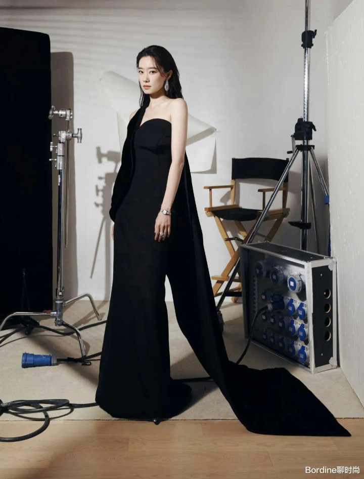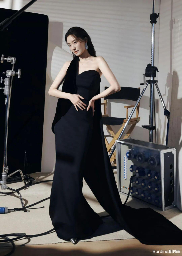 这件玄色抹胸鱼尾裙继承了极简的剪裁,莫得任何迷漫的斑纹和遮挡,皆备依靠面料的质感和版型的线条来取胜。抹胸策画完满展现了张小斐优厚的肩颈线条和锁骨,收腰策画勾画出纤细的腰肢,鱼尾裙摆则顺着躯壳弧线当然下垂,将女性的柔好意思与性感展现得大书特书。