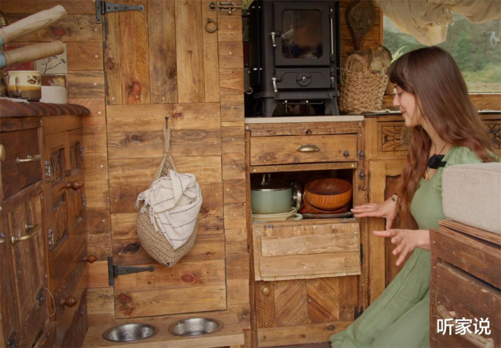 说起来,这“厢货小家”也很是有趣,既有水过滤系统,又有太阳能板,还有燃木壁炉和丙烷气炉,可谓是水电气暖一应俱全、自给自足,也难怪她能在里面一住就是两年的时间。