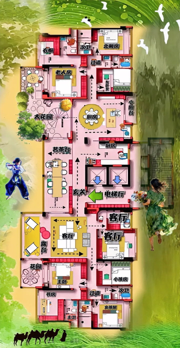 一个给老人留几十平的花园,另一个预备的收纳空间!