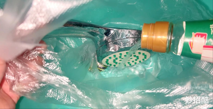 等时辰到了之后,就把塑料袋取下来,水垢依然去除差未几了。然而一些毅力的水垢还会附着在淋浴排头名义,然而它依然变软了。