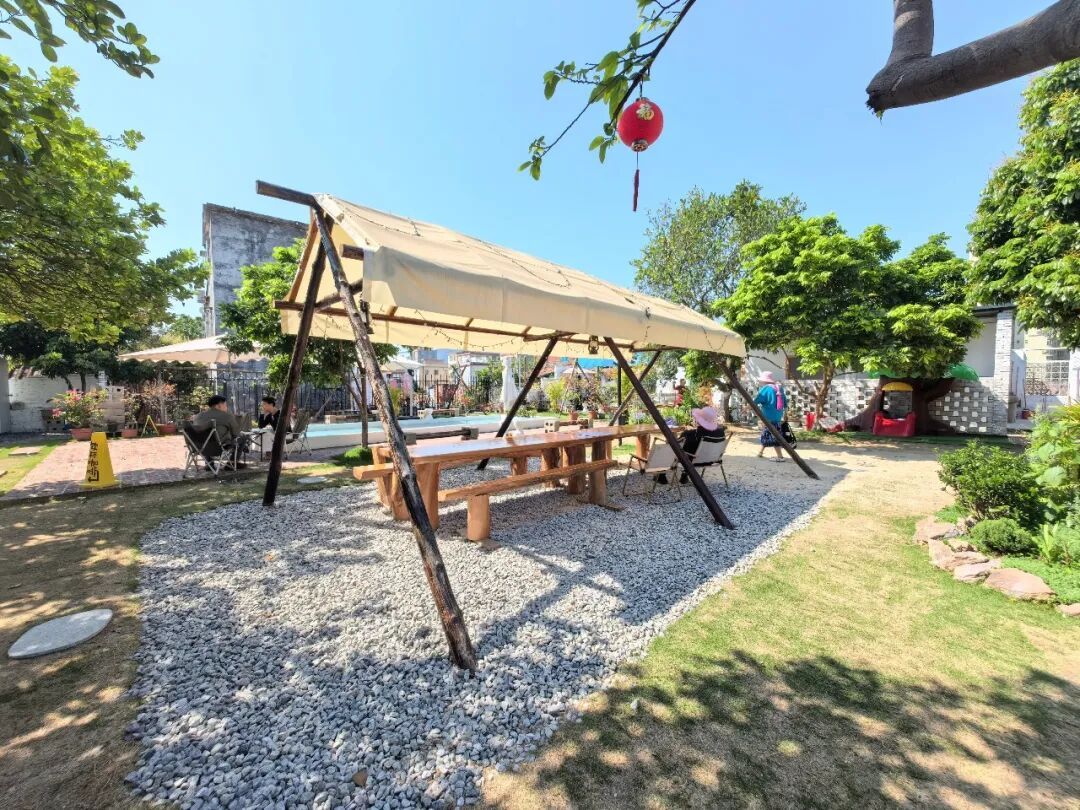 或在露营吧台、秋千旁拍照打卡,