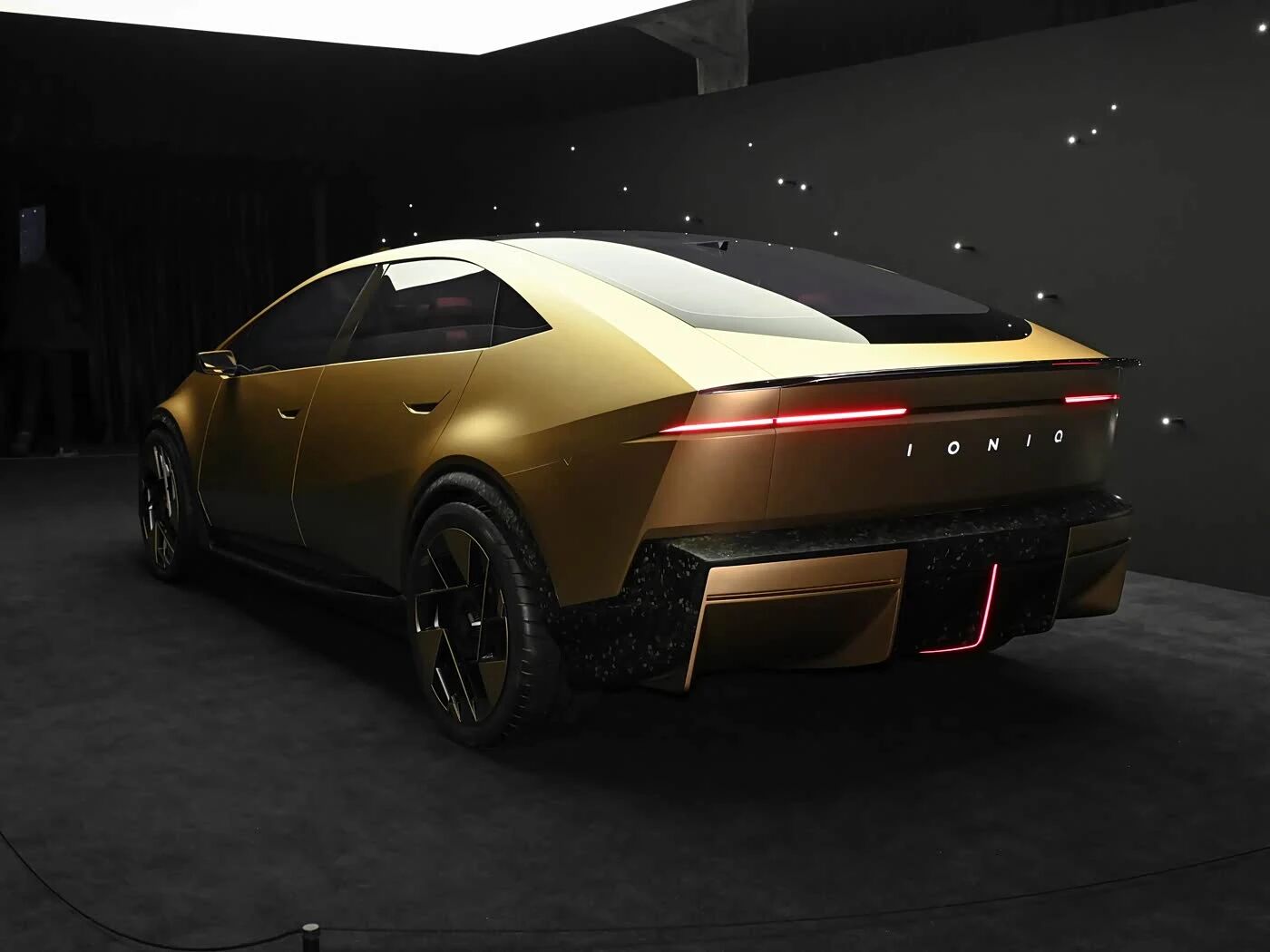 率先来看VENUS CONCEPT(金星),车如其名,其全体车身遴荐专属端淑金配色,独有的单厢车体格式,让其在外形上也极具性情,车辆遴荐轻量化框架式车顶、透明扰流板和赛车中心锁立场的轻量化铸造轮圈,科技感拉满。独有的 V 型灯光系统、悬浮式透光泽视镜,以及灵感源自"金唱片"的制动盘蓄意,令外不雅极具潮水感。