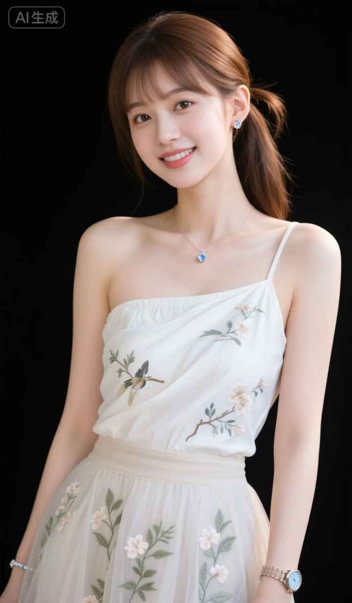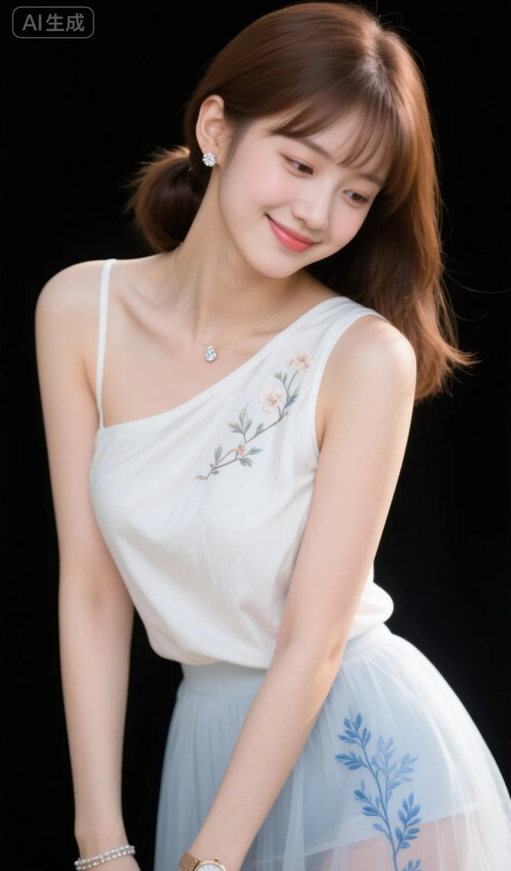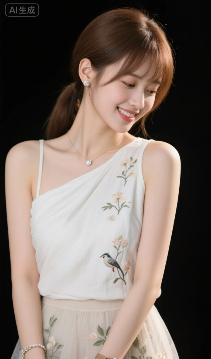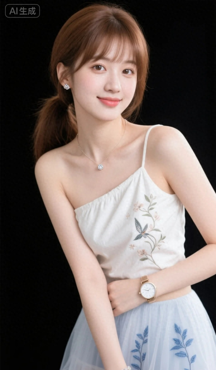 米兰 穿拈花单肩裙的好意思女