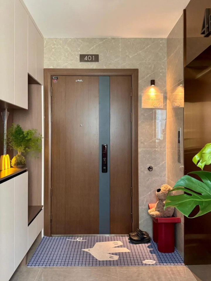 不用再等电梯耗时间,电梯厅相当于私人空间,做鞋柜、放东西自由,也不用和陌生人偶遇、和邻居寒暄听闲话,开门关门都清净自在。