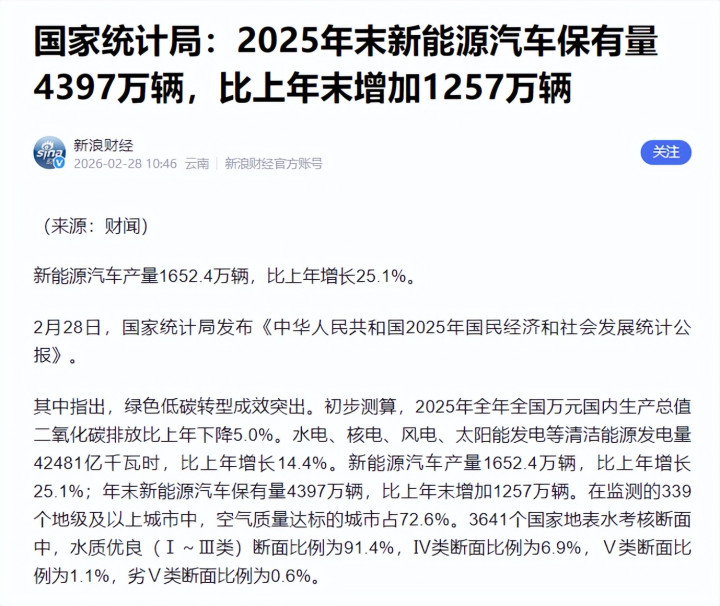 截止2025年年底,新动力汽车保有量达到4397万辆,占比12.01%,比拟于2024年年底,保有量增多了2个百分点。
