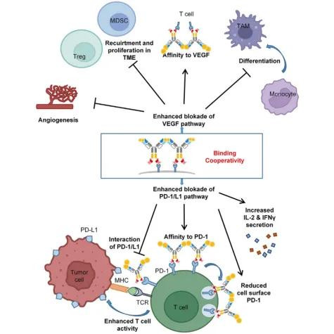依沃西是天下首创的PD-1/VEGF双抗,稀薄的对称四价结构将PD-1和VEGF如胶投漆,在体内能进展抗PD-1和抗VEGF的高效协同作用。一方面依沃西的PD-1部分能通过阻断PD-1/PD-L1通路,湮灭肿瘤微环境对T细胞的扼制,在外周激活T细胞,被激活的T细胞概况主动穿越受损的血脑障蔽参加脑本体,或通过眉目丛和脑膜淋巴管参加脑脊液从而进展抗肿瘤作用[11]。但脑挪动灶的免疫微环境常处于扼制状况,导致脑挪动瘤中CD8+T细胞处于耗竭状况,大大设施了疗效。而这恰是依沃西另一端抗VEGF的用武之地,抗VEGF能使肿瘤血管正常化、改善免疫微环境,从而为抗PD-1端湮灭扼制的T细胞提供最好“战场”环境,提高了对脑挪动灶的作用。同期抗VEGF还能缓解脑部水肿,改善神经功能。综上,米兰体育依沃西的靶免一体,高效协同机制让其在颐养肿瘤脑挪动中进展出更强疗效。